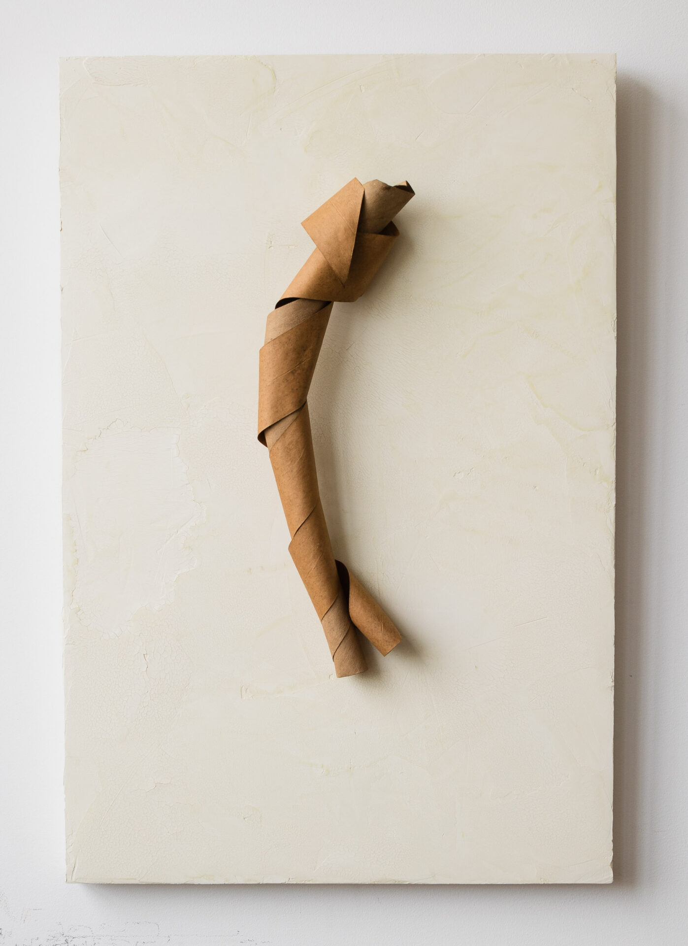 salvaged cardboard on birch panel coated with Venetian plaster